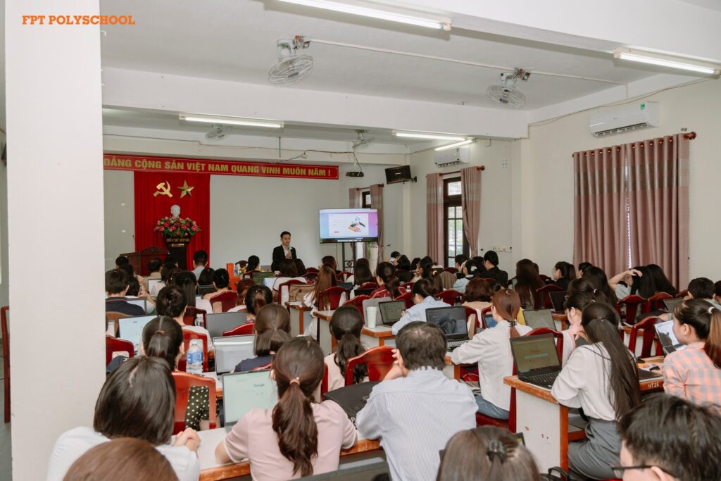 Mở đầu chuỗi hoạt động, THCS Nguyễn Phú Hường phối hợp cùng FPT PolySchool Đà Nẵng tổ chức workshop “AI – Chìa khóa vàng trong giảng dạy” với mục tiêu giúp thầy cô tiếp cận AI một cách thực tiễn, dễ hiểu và dễ ứng dụng.