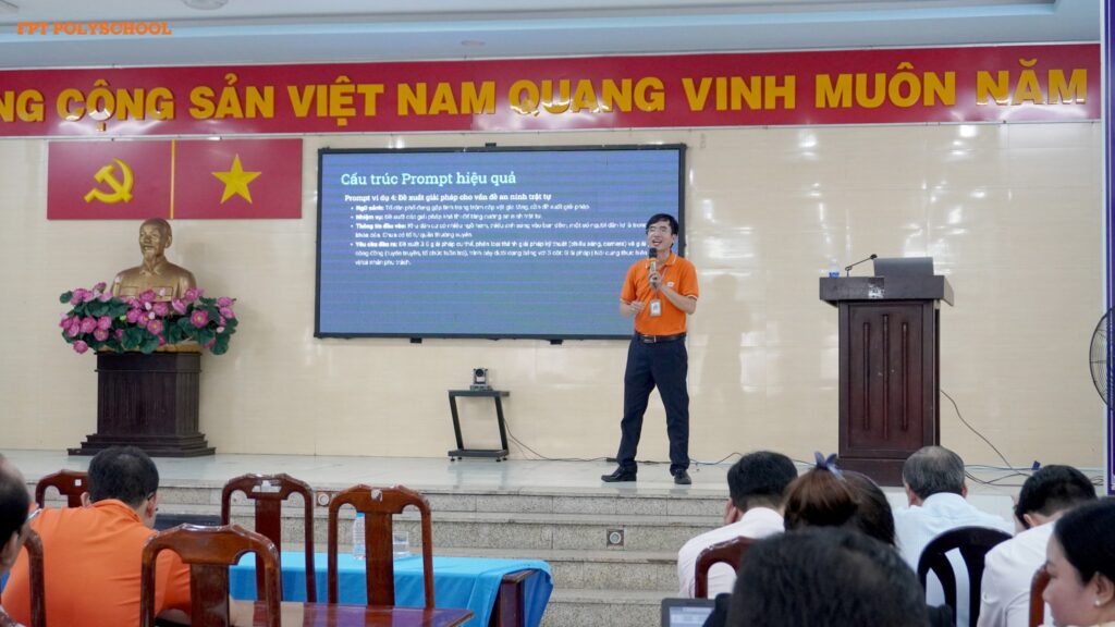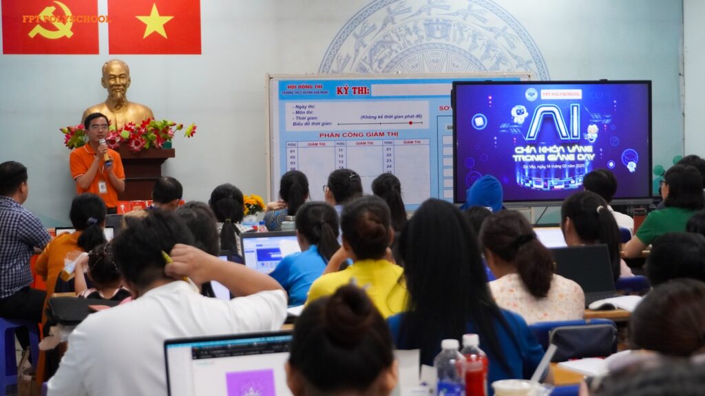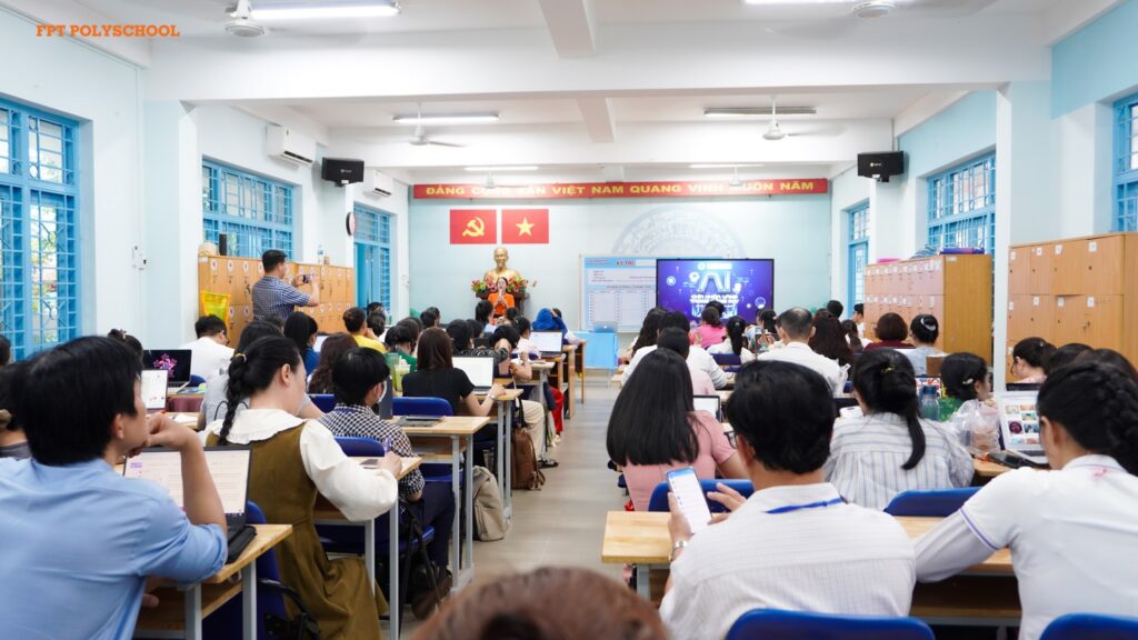 Trong hành trình đồng hành cùng giáo dục và cộng đồng địa phương trước làn sóng chuyển đổi số, FPT PolySchool TP.HCM đã và đang triển khai nhiều hoạt động tập huấn, workshop về trí tuệ nhân tạo (AI), mang công nghệ đến gần hơn với giáo viên, cán bộ và người làm công tác quản lý. Những chương trình này không chỉ giúp người tham gia làm quen với AI, mà còn hướng đến mục tiêu ứng dụng công nghệ một cách thiết thực, hiệu quả trong công việc và giảng dạy hằng ngày.