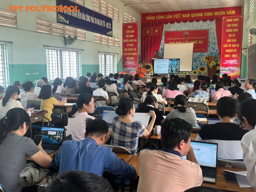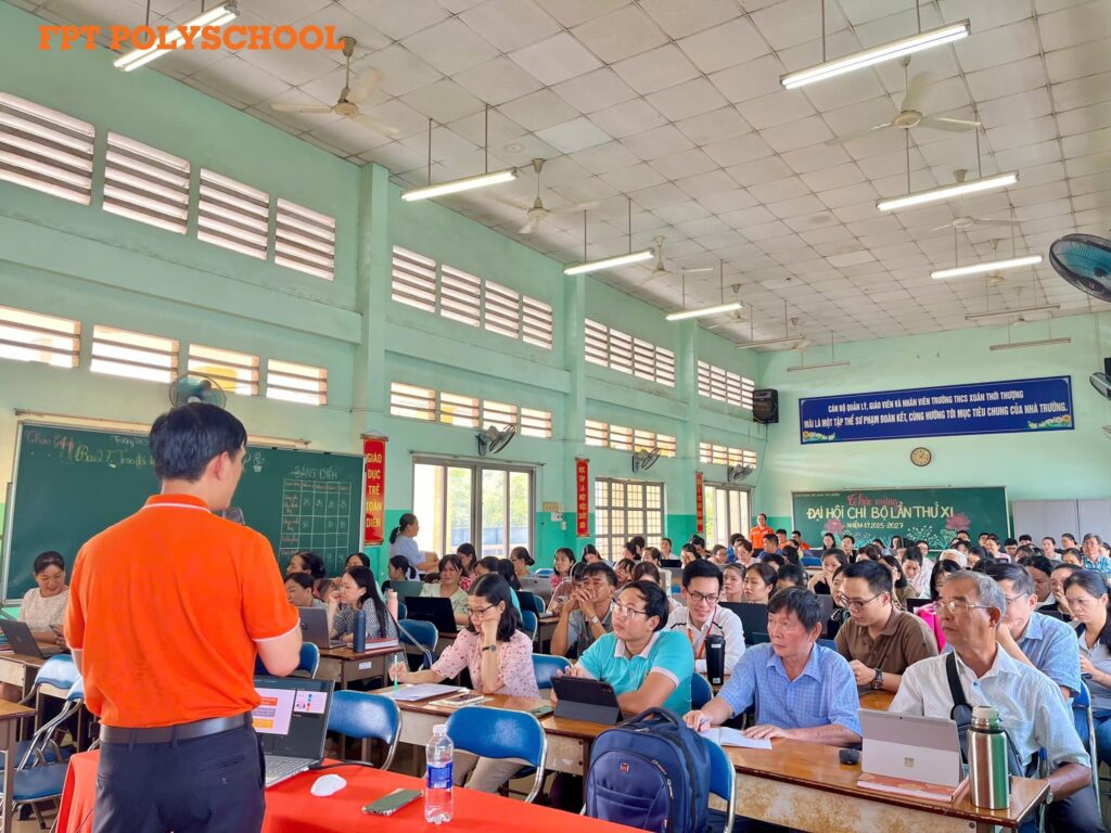 Tiếp nối chuỗi hoạt động, FPT PolySchool TP.HCM đã mang chương trình đến với Trường THCS Xuân Thới Thượng, thu hút sự tham gia của khoảng 100 giáo viên.