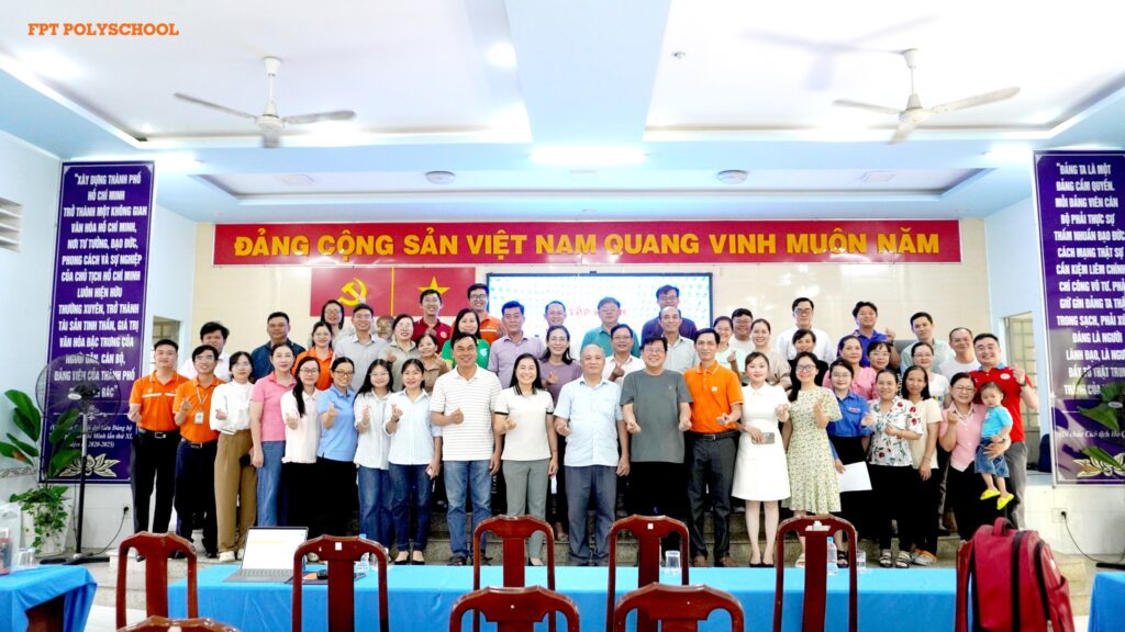 Không chỉ tập trung vào khối giáo dục, FPT PolySchool TP.HCM còn tích cực đồng hành cùng địa phương trong nâng cao năng lực số cho đội ngũ cán bộ. Sáng 03/08/2025, nhà trường phối hợp tổ chức chương trình “AI trong tầm tay – Tập huấn chuyển đổi số” tại UBND phường Trung Mỹ Tây, với sự tham gia của hơn 170 cán bộ, công chức và người lao động trên địa bàn.