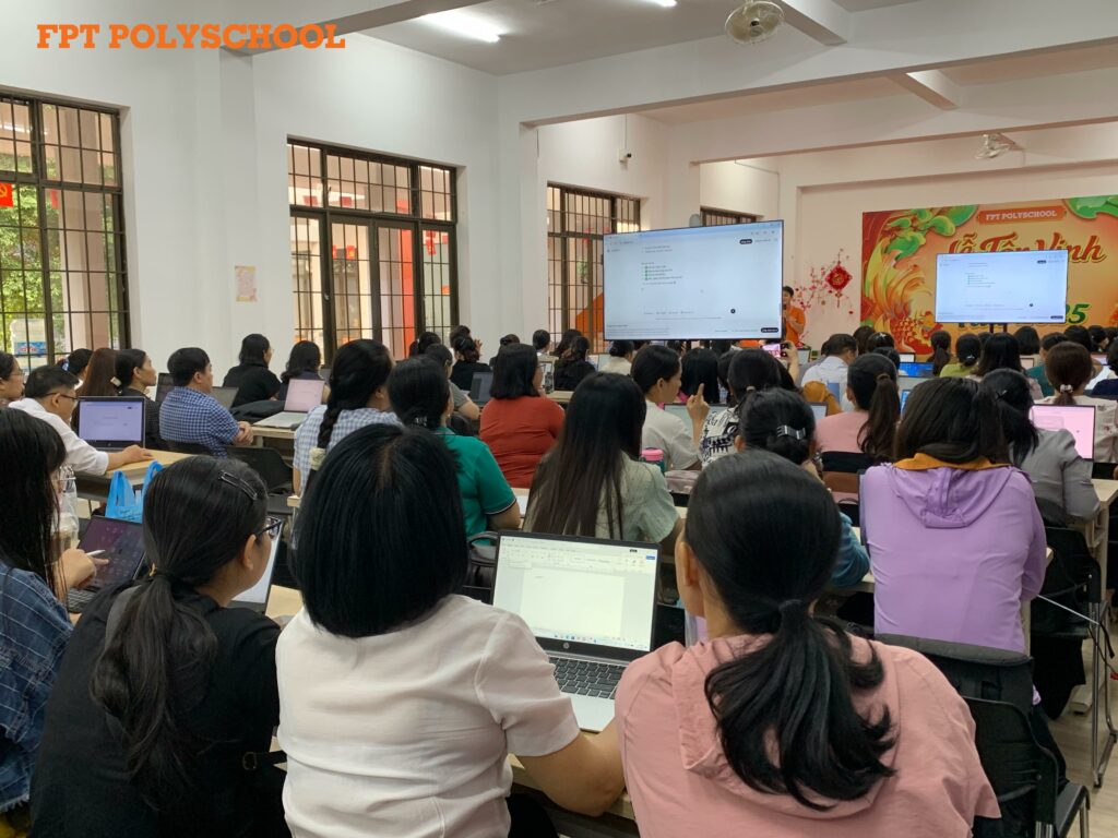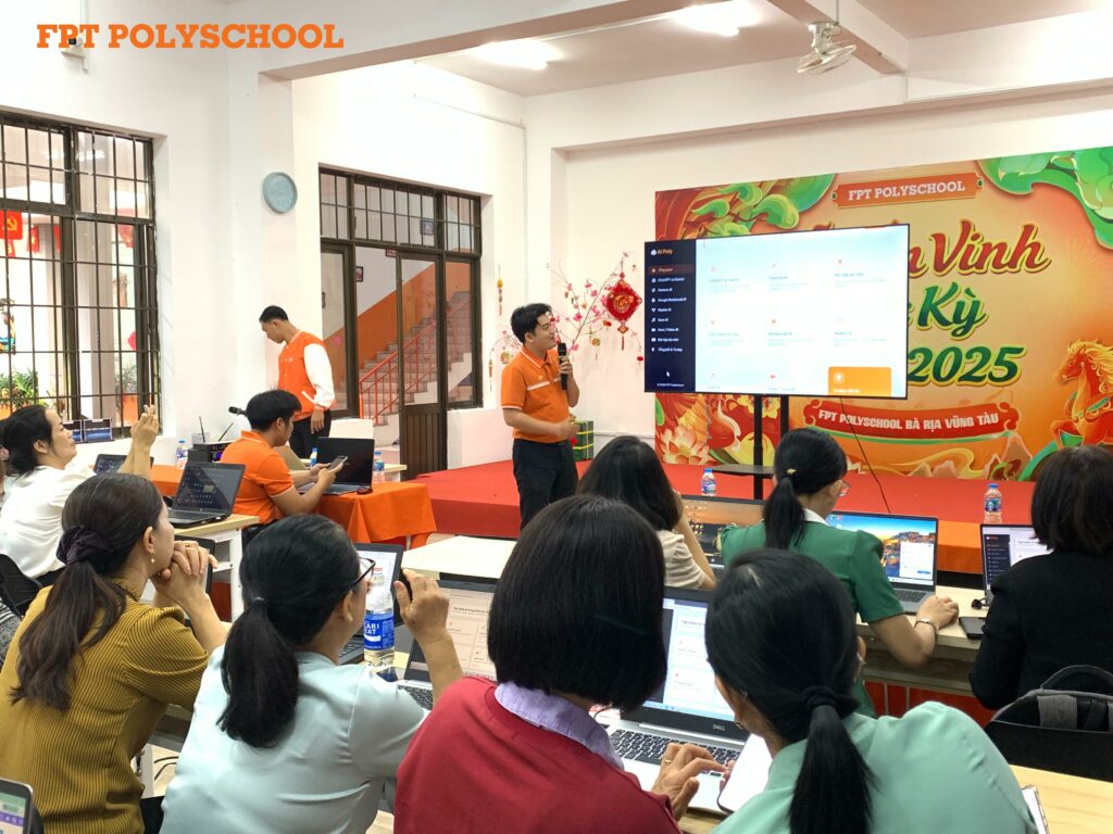 Trong tháng 01/2026, FPT PolySchool Vũng Tàu đã tổ chức nhiều buổi tập huấn cho giáo viên tại các trường THCS như: THCS Văn Lương, THCS Long Toàn, THCS Nguyễn Trãi… Tiếp nối hiệu quả bước đầu, chương trình tiếp tục được mở rộng đến nhiều trường THCS khác trên địa bàn TP. Vũng Tàu như: THCS Nguyễn Thị Định, THCS Nguyễn Huệ, THCS Nguyễn Công Trứ…, qua đó cho thấy nhu cầu lớn và tính thiết thực của việc ứng dụng AI trong giảng dạy, đồng thời khẳng định sức lan tỏa của mô hình tập huấn do FPT PolySchool triển khai.