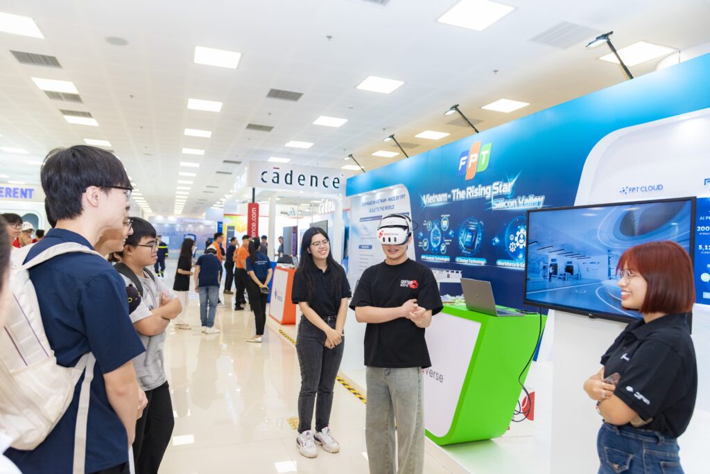 Song hành với năng lực công nghệ, FPT giới thiệu chương trình đào tạo AI và vi mạch bán dẫn, với học liệu chuẩn quốc tế, đội ngũ giảng viên trong – ngoài nước và sự gắn kết chặt chẽ với doanh nghiệp. Sinh viên được tham gia dự án thực tế từ sớm, tích lũy kỹ năng chuyên sâu, đặc biệt theo lộ trình chương trình Kỹ sư 57 – hướng tới xây dựng lực lượng kế cận chiến lược cho chuyển đổi số quốc gia.