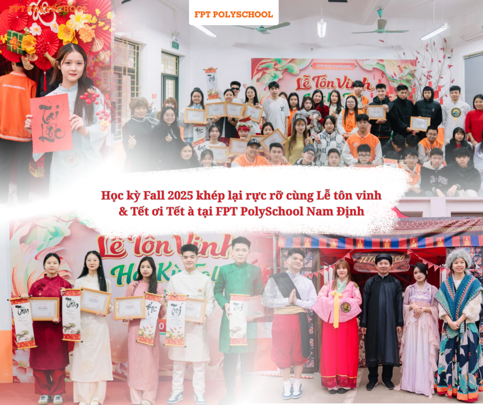 Sự kiện Lễ Tôn vinh học kỳ Fall 2025 & “Tết ơi Tết à” tại FPT PolySchool Nam Định là dịp ghi nhận hành trình nỗ lực của sinh viên, đồng thời lan tỏa không khí Tết rộn ràng, gắn kết và đầy cảm xúc đầu xuân.