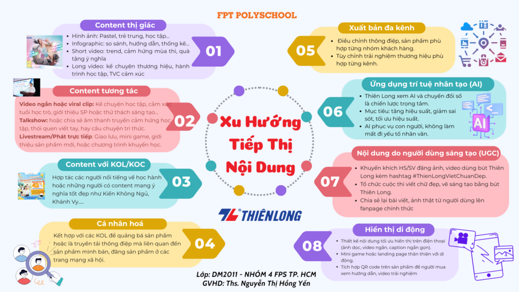 Trong một buổi học Nhập môn Digital Marketing với những lý thuyết cơ bản về Content Marketing, thay vì chọn ôn tập lý thuyết suông, làm bài trắc nghiệm Kahoot hay thuyết trình phản biện như mọi khi, cô Nguyễn Thị Hồng Yến, Giảng viên Digital Marketing FPS TP. HCM (Cô Giáo Moon) đã ứng dụng sơ đồ tư duy để buổi học trở nên sinh động hơn và kiến thức được các em hệ thống một cách đầy đủ, dễ nhớ hơn. Các nhóm sinh viên đã mang đến những sản phẩm sơ đồ tư duy nhiều màu sắc, hình ảnh minh họa phong phú nhưng vẫn đảm bảo tính logic, thể hiện rõ nội dung trọng tâm của bài học.