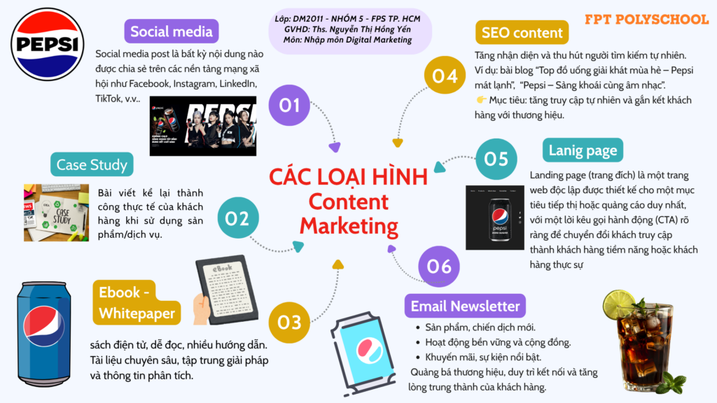 Điều đặc biệt ở những buổi học này là các em không chỉ hệ thống lại kiến thức một cách tổng quát, mà còn biết cách lựa chọn thông tin quan trọng, từ khóa cốt lõi để đưa vào thiết kế sao cho hài hòa, cân đối. Từ khái niệm Content Marketing, các xác định 5W1H và quy trình xây dựng chiến lược Content Marketing, đến các loại hình Content và xu hướng phổ biến hiện nay đều được các bạn “tóm gọn” trong một tấm sơ đồ nhưng vẫn dễ hiểu cho người xem.