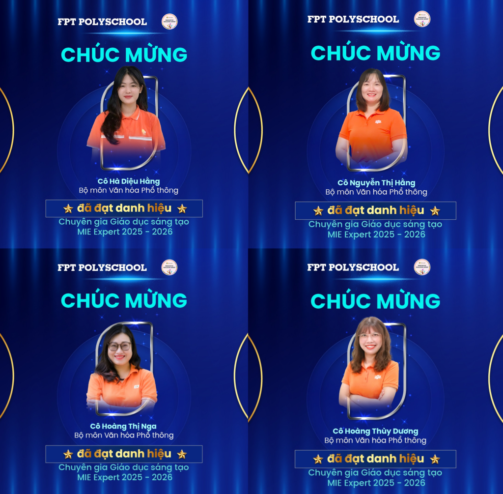 Ngày 23/09/2025 vừa qua, FPT PolySchool tự hào và vinh dự khi 11 giảng viên của cơ sở Hà Nội nhận được danh hiệu Chuyên gia Giáo dục Sáng tạo từ Microsoft (Microsoft Innovative Educator Expert – MIE Expert). Với danh hiệu uy tín này đến từ Microsoft, các giảng viên đã cho thấy sự đổi mới giáo dục bằng công nghệ và những phương pháp sáng tạo mới để bắt nhịp với xu hướng toàn cầu.