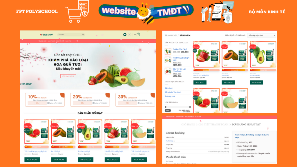 Thiết kế website thương mại điện tử là môn học chuyên ngành giúp sinh viên FPT PolySchool trực tiếp biến ý tưởng kinh doanh thành sản phẩm số hoàn chỉnh. Không cần là coder hay designer, sinh viên vẫn có thể xây dựng website chuẩn TMĐT, tối ưu UX/UI, thể hiện rõ bản sắc thương hiệu và đầy đủ tính năng bán hàng. Mỗi sản phẩm là một dấu ấn sáng tạo riêng, tạo nên bức tranh thương mại điện tử sống động và giàu tính thực tiễn.