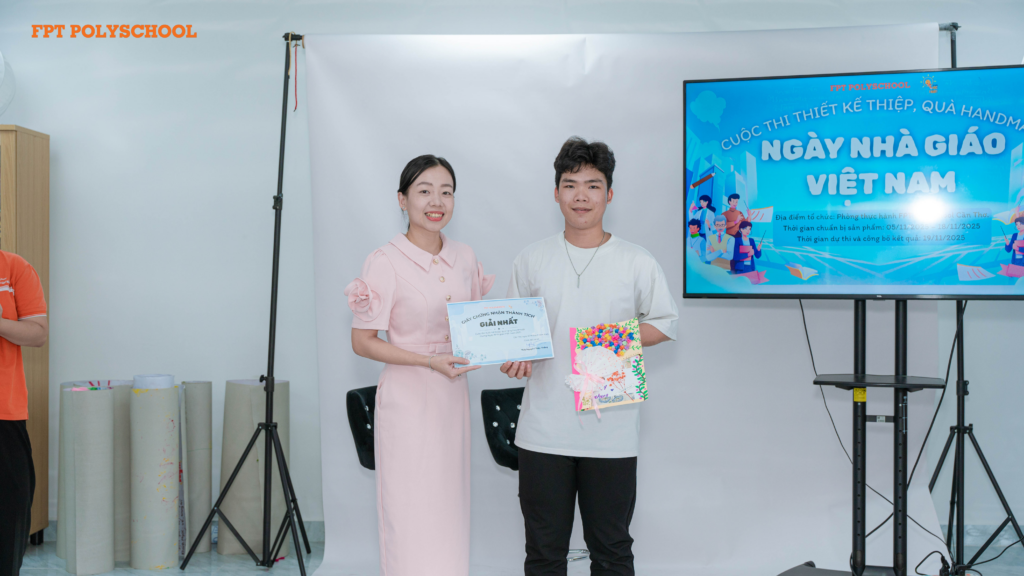 Tại FPT PolySchool Cần Thơ, cuộc thi “Thiết kế thiệp & quà tặng handmade” đã thu hút đông đảo sinh viên tham gia. Những tấm thiệp nhỏ nhắn chứa đầy lời chúc, những món quà tự tay làm gửi gắm tình cảm chân thật, không cầu kỳ nhưng chất chứa sự trân trọng. Những dòng chữ nắn nót, những họa tiết tỉ mỉ đã làm ngày tri ân trở nên ấm áp hơn bao giờ hết.
