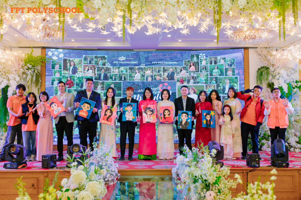 Còn ở FPT PolySchool Hải Phòng, sinh viên đã khiến thầy cô bất ngờ và xúc động khi dành tặng những bức tranh đắp nổi từ giấy tái chế, được tạo hình theo chân dung của giảng viên. Mỗi bức tranh là hàng giờ kiên nhẫn xé giấy, phối màu, tạo hình, là cả một quá trình học trò lặng lẽ gửi gắm sự tri ân bằng sáng tạo, bằng sự tỉ mỉ và tình cảm chân thật.
