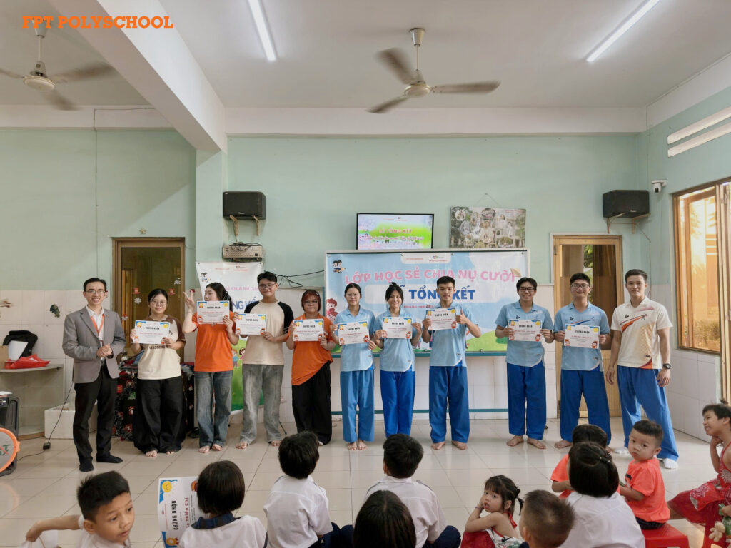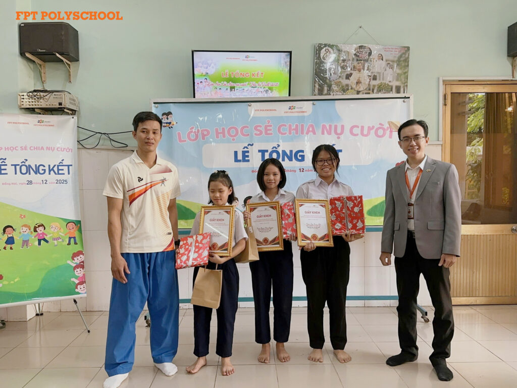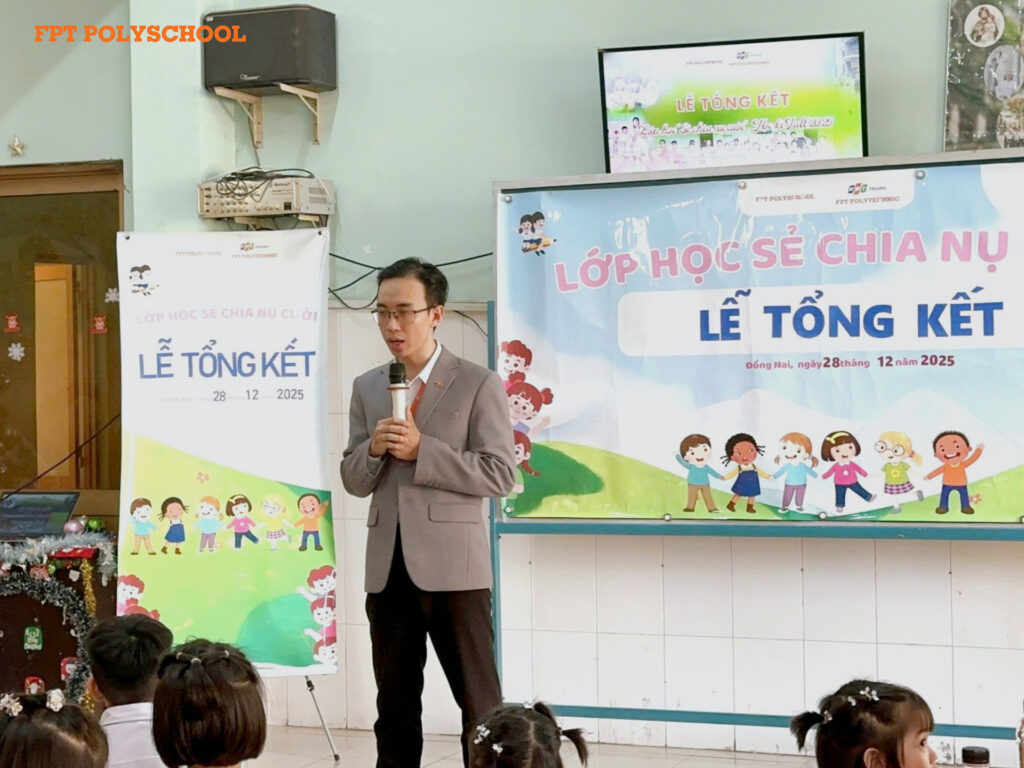 Trong không khí ấm áp và tràn đầy cảm xúc, FPT PolySchool Đồng Nai tổ chức Lễ tổng kết “Lớp học Sẻ chia nụ cười”, học kỳ Fall 2025 tại Trung tâm Nuôi dưỡng Trẻ mồ côi Giáo xứ Hà Nội (Phường Long Bình). Đây không chỉ là buổi lễ ghi nhận thành quả học tập mà còn là dịp để thầy trò cùng nhìn lại một chặng đường đầy ắp yêu thương và nỗ lực.