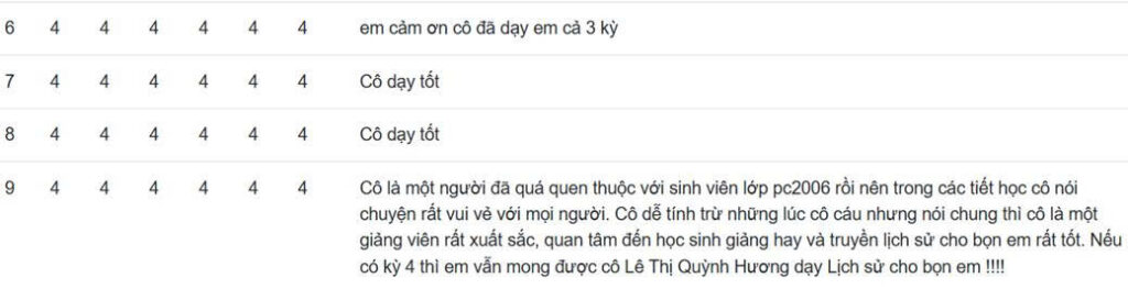 Những lời cảm ơn giản dị như thế, đối với tôi, chính là phần thưởng quý giá nhất. Tôi cũng nhận được những “thành quả” khác, không đo được bằng điểm số, mà bằng niềm tin và sự thay đổi nơi các em. Có sinh viên từng nhút nhát, nay đã dám đứng lên thuyết trình. Có em từng sợ phát biểu, nay lại chủ động xin làm nhóm trưởng. Có em từng nghĩ mình “không giỏi”, nay lại hào hứng và trả lời tốt các câu hỏi của môn Lịch sử. Mỗi lần chứng kiến những điều ấy, tôi biết rằng hạt giống mình gieo đã nảy mầm. Và tôi cũng hiểu, điều đẹp nhất mà nghề giáo mang lại không phải là sự công nhận của xã hội, mà là sự trưởng thành của học trò.
